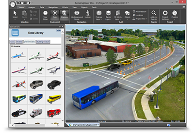 With TerraExplorer's robust and extensive capabilities and ever-increasing interoperability, stunningly realistic 3D visualizations can be created by overlaying the terrain with unlimited data layers, 3D models, virtual objects and more.